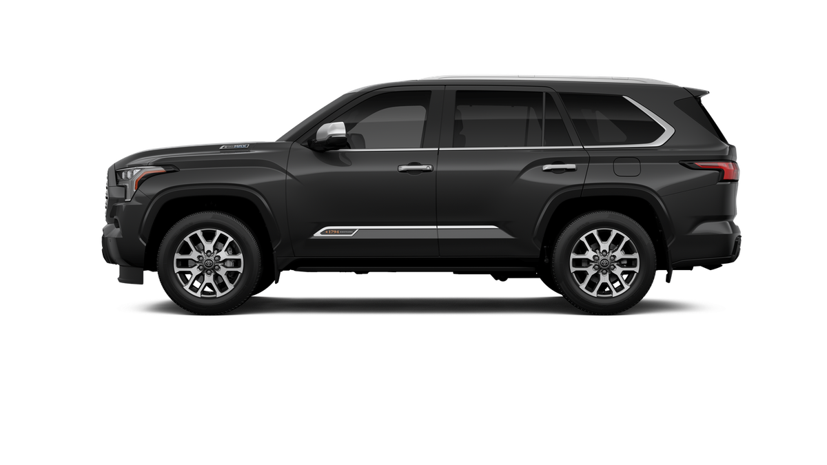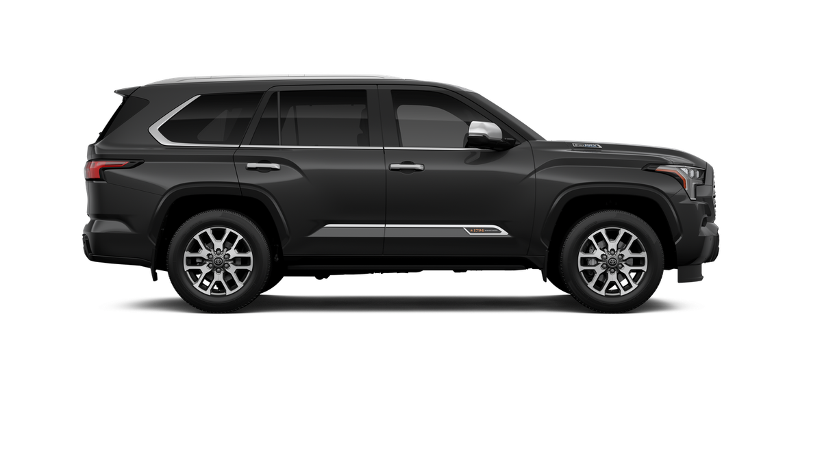 - Bright-chrome "SEQUOIA" rear door badge, chrome "1794 EDITION" door badge and garnish, door handles, window molding and mirror caps; color-keyed tailgate spoiler; black-painted overfenders