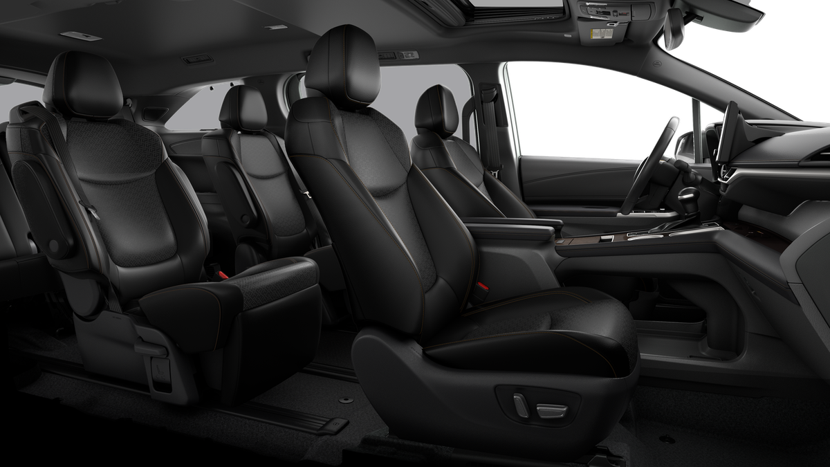 • 7-passenger seating with premium leather-trimmed second-row-seat captain's chairs with super-long-slide feature and ottomans 48