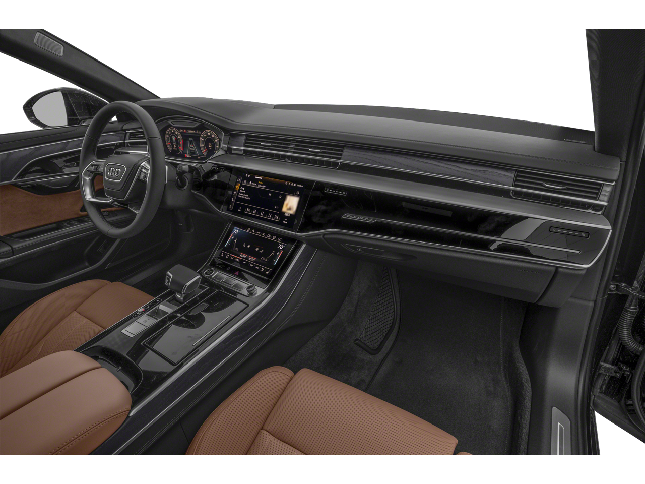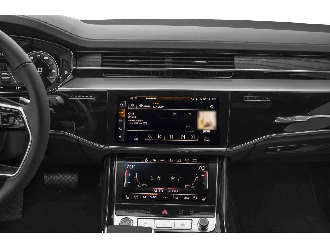 - Radio: Audi MMI Navigation Plus -inc: MMI touch response (10.1" upper screen), Audi connect CARE (limited time subscription), Audi connect PLUS (6-months trial, acceptance of terms required), Audi music interface w/front and rear USB-C ports, Audi phone box w/wireless charging and signal booster, Audi smartphone interface w/wireless Apple CarPlay and Android Auto and SiriusXM w/360L (3 months trial subscription, acceptance of terms required)