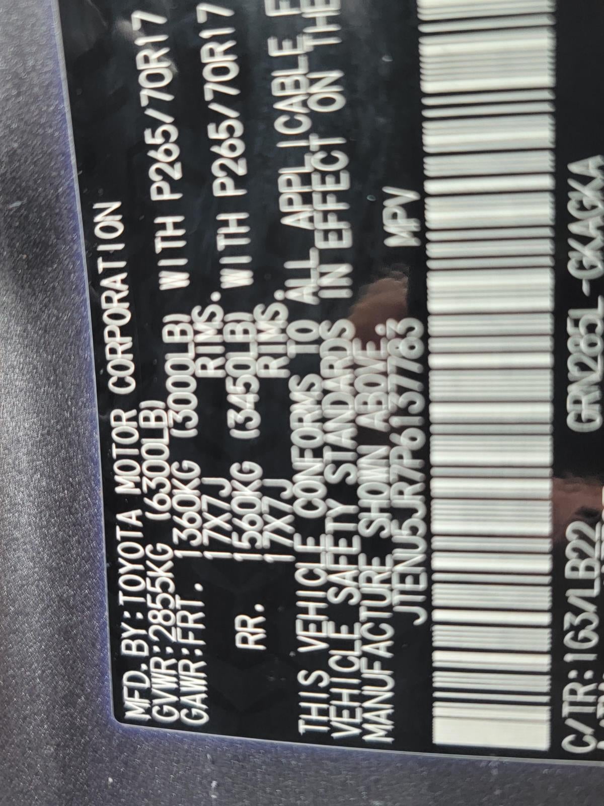 - Tires: P265/70R17 Mud & Snow