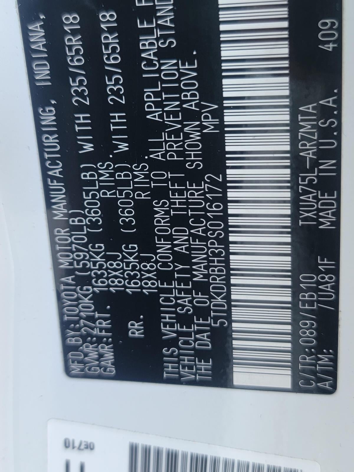 - Vehicle Name: Toyota Highlander