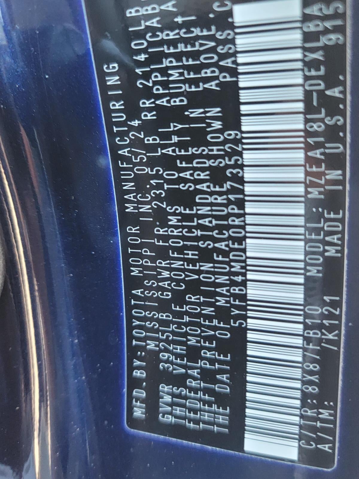 Price includes all costs to be paid by consumer, except for Tax, Title, License, Registration, and $999 Documentation Fee (optional ancillary products are additional) We make every effort to present vehicle information which is accurate. The vehicle pricing, equipment, specifications & photos shown above are believed to be accurate, but are provided with the understanding that for various reasons beyond our control, such information may not be 100% accurate & further are subject to change without notice. Vehicle information is based on standard equipment for the applicable manufacturer & therefore exact vehicle information, such as color, equipment & accessories should be confirmed with a sales representative. Any special financing shown is provided by one of our third party sources & is subject to purchaser's satisfaction of all requirements imposed by said sources. Fuel economy figures shown are provided from EPA mileage estimates, & may not be comparable across different model years. Your actual mileage will vary, depending on specific options selected, how you maintain the vehicle & your personal driving habits. Toyota Lease disclaimers: $0 security deposit. Leases do not include taxes, license, titles fees.