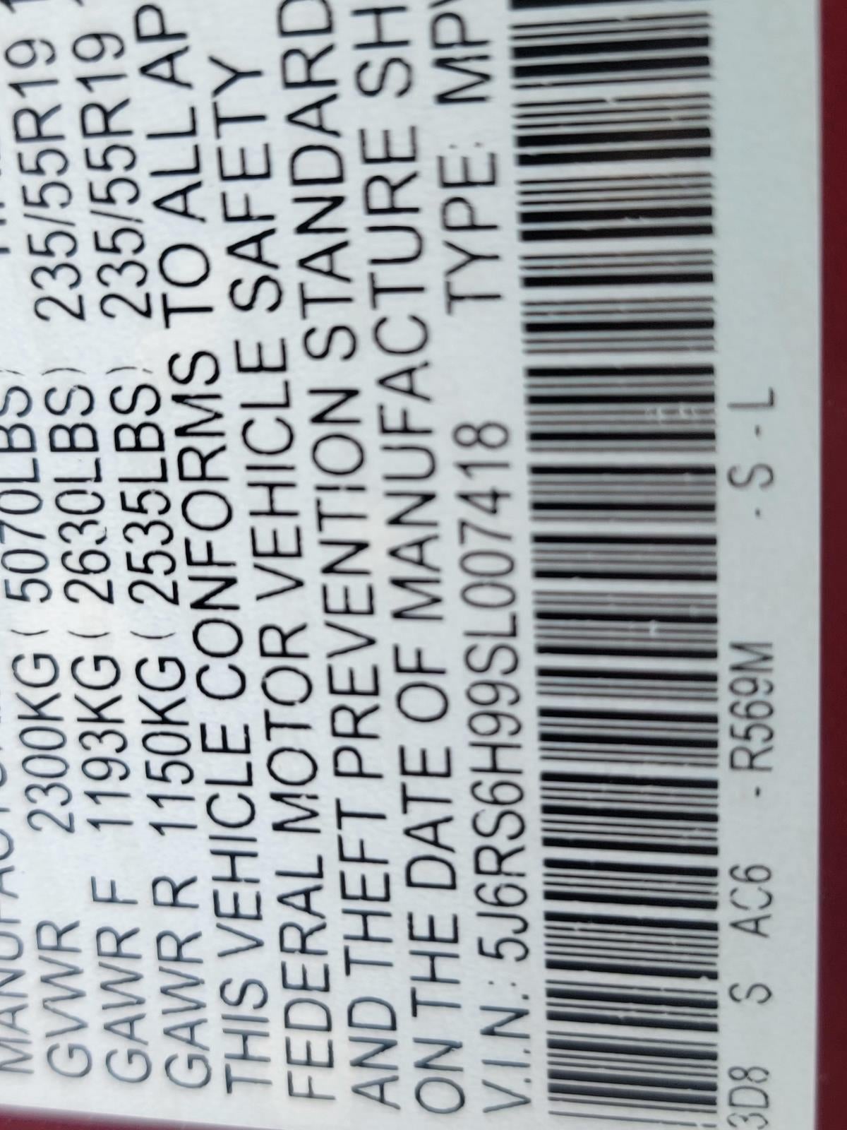 - Rear Tire Size: P235/55HR19
